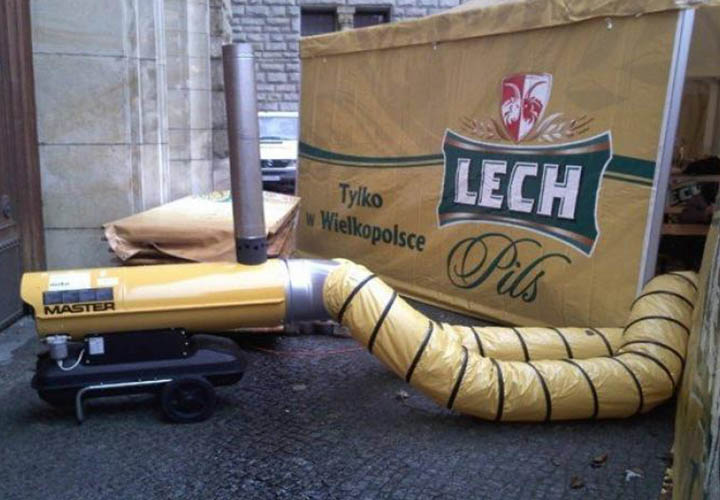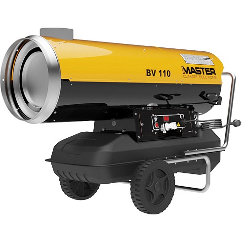 «Master BV 110 E» — компактная модель весом немногим более 60-ти кг без тележки. Последняя располагает стальными обрезиненными колёсами и удобными ручками для лёгкого перемещения по объекту. Двигатель установки работает на дизельном топливе и расходует 2,71 литра в час, вырабатывая 1 800 кубометров горячего воздуха.
