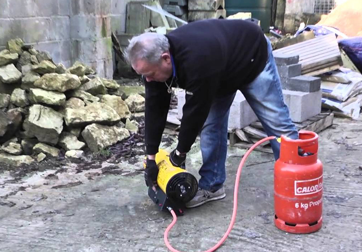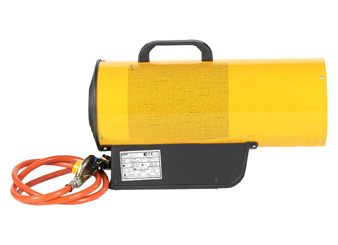Установка работает на пропане или бутане. После подключения газового баллона нужно поджечь горелку и запустить вентилятор. Он будет нагнетать холодный воздух внутрь корпуса, прогоняя его через горелку и обеспечивая на выходе тёплый воздушный поток. Поскольку отработанные газы будут поступать вместе с ним, помещение нужно хорошо проветривать.