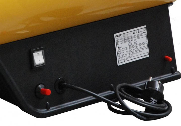 Оборудование работает в диапазоне мощностей от 36-ти до 53-ёх кВт. Оно располагает надёжным электрическим двигателем с защитой перегрева. При превышении температуры нагрева выше допустимого уровня, происходит автоматическое отключение мотора, за счёт чего продлевается период его эксплуатации. Газ (бутан/пропан) подаётся из баллонов, его расход за один час работы составляет 3,78 литра, благодаря которым вырабатывается 1 450 кубометров тёплого воздуха.